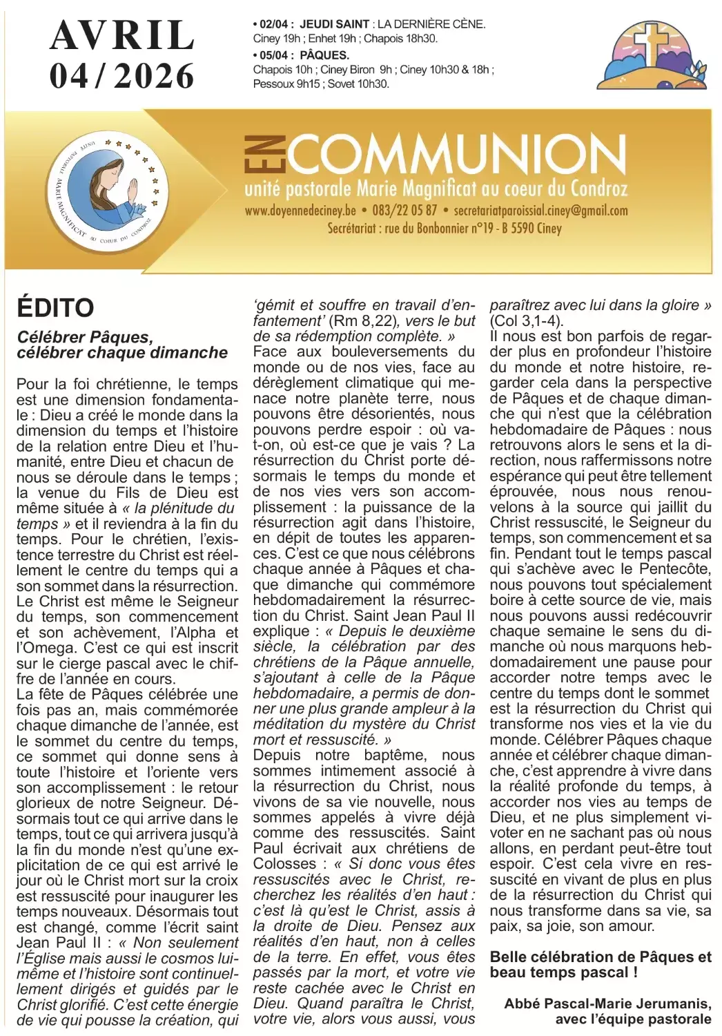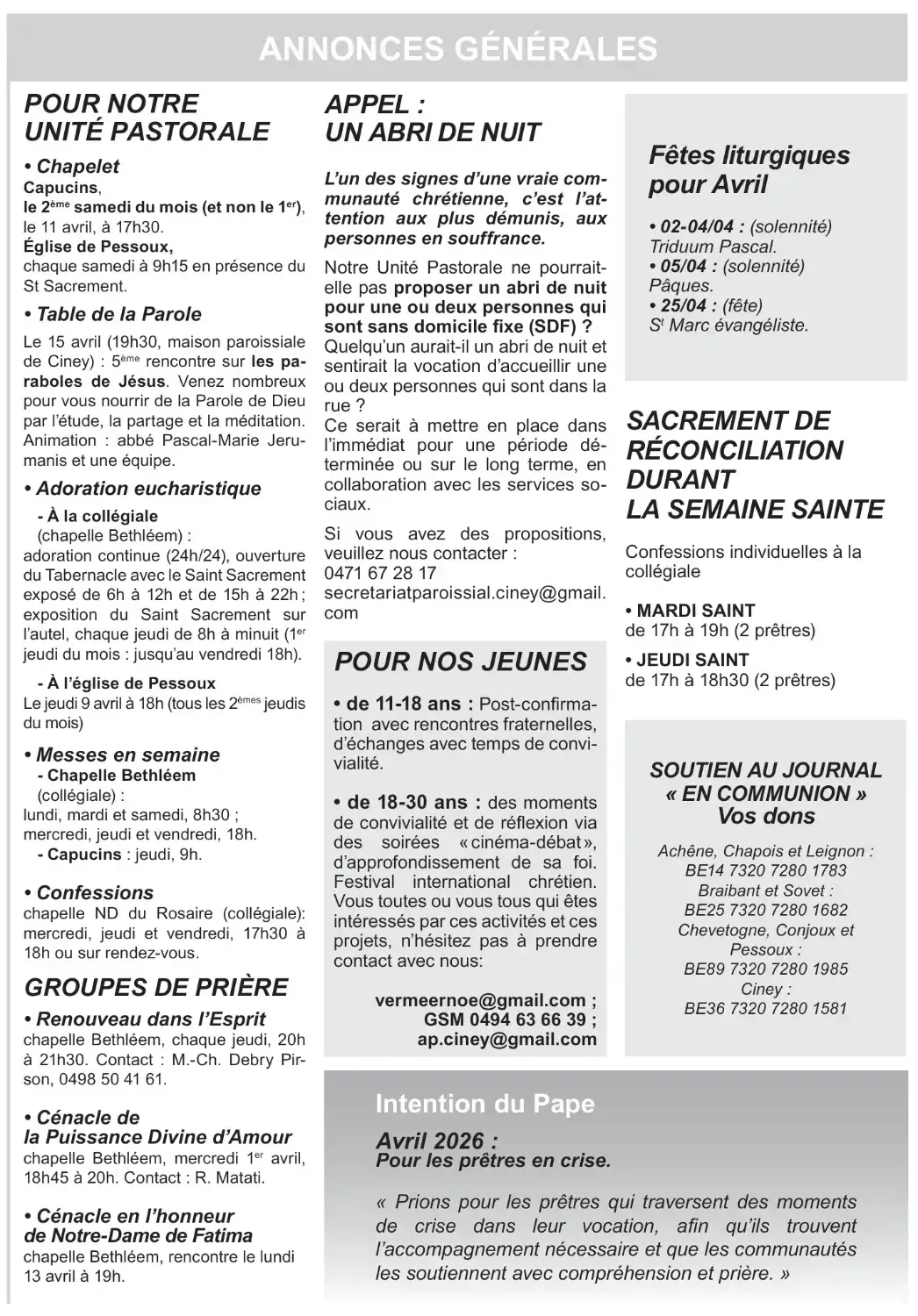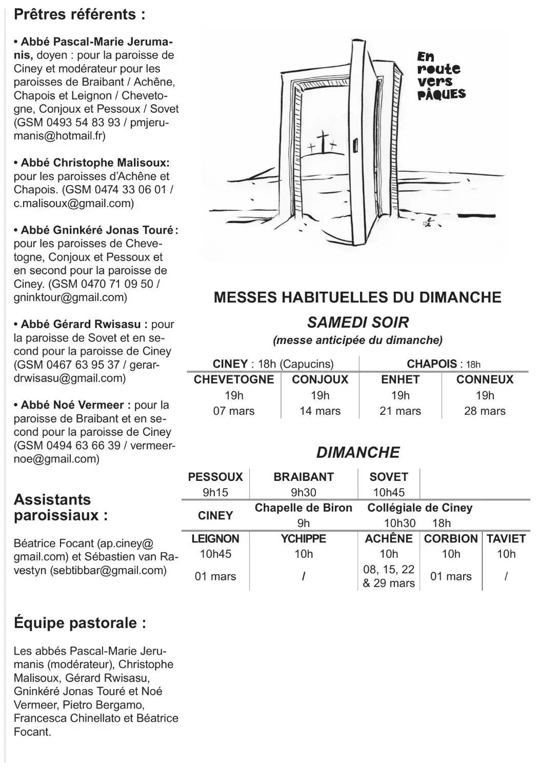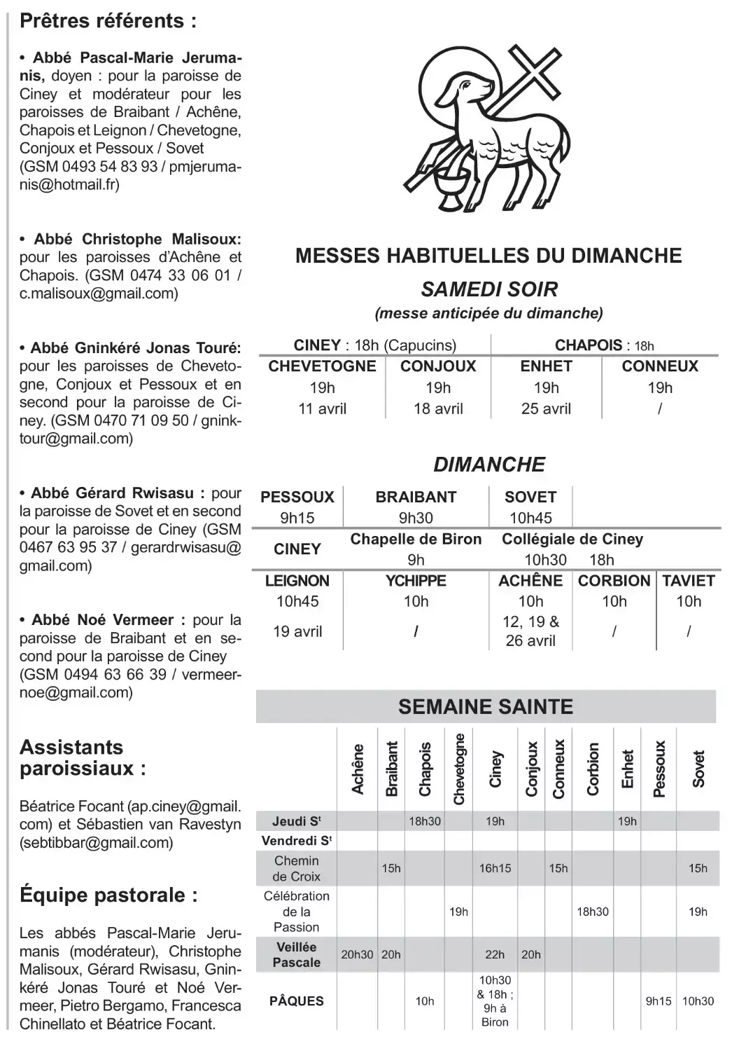 Paroisses : Chevetogne, Conjoux, Conneux, Enhet, Pessoux Annonces pour notre unité pastorale page 1/3page 2/3page 3/3 Intentions des messes célébrées Retour en haut de page